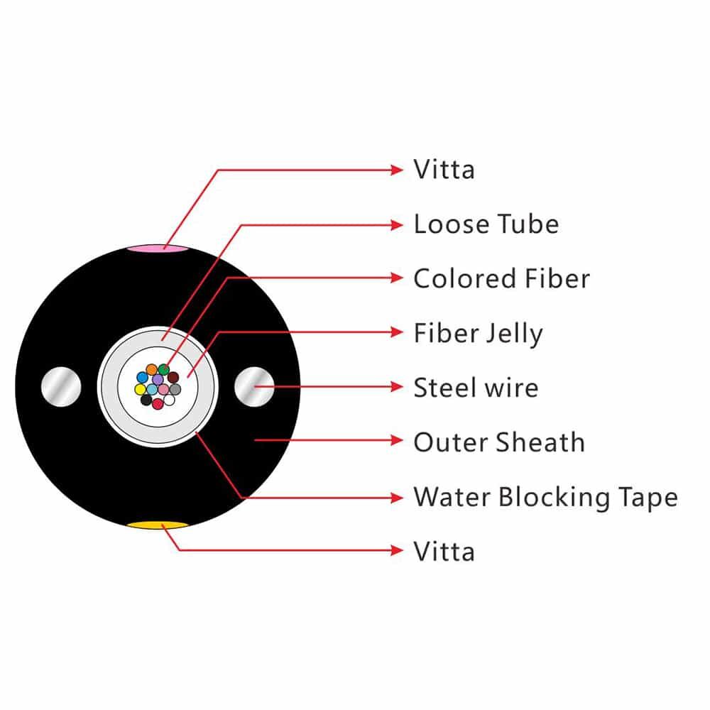 ২৫০μm তন্তুগুলি একটি উচ্চ মডুলাস প্লাস্টিক দিয়ে তৈরি একটি আলগা নলের মধ্যে স্থাপন করা হয়। নলগুলি একটি জল-প্রতিরোধী ভরাট যৌগ দিয়ে পূর্ণ করা হয়। নলের উপরে, তারের জলরোধী রাখার জন্য জল-প্রতিরোধী উপাদান প্রয়োগ করা হয়। দুই পাশে দুটি সমান্তরাল ইস্পাত তার স্থাপন করা হয়। তারটি একটি পলিথিন (PE) আবরণ দিয়ে সম্পূর্ণ করা হয়।
